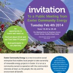 Over 70 local people, community groups, businesses and energy experts came together on the evening of Tuesday 4th February, despite the weather, for Exeter Community Energy (ECOE) first public meeting. The evening started with networking and then ECOE’s eight directors introduced the vision ECOE has for how community-owned renewable energy projects can benefit Exeter, its […]