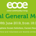 Thursday 6th June 18.30 The Meeting Room, Stephens Scown LLP, Curzon House, Southernhay, Exeter, EX1 1RS (See on Google Maps) We invite all our members and supporters to join us on June 6 for the Exeter Community Energy (ECOE) Annual General Meeting at Stephens Scown at 6:30pm. We’ll be reviewing the year’s activities, and showing […]