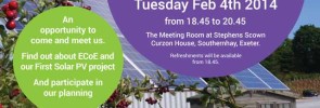 Over 70 local people, community groups, businesses and energy experts came together on the evening of Tuesday 4th February, despite the weather, for Exeter Community Energy (ECOE) first public meeting. The evening started with networking and then ECOE’s eight directors introduced the vision ECOE has for how community-owned renewable energy projects can benefit Exeter, its […]