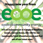 ECOE Community Fund Allocation Event, plus – news updates from ECOE’s projects Wednesday 30th January 18.30 to 20.30 The Meeting Room, Stephens Scown LLP, Curzon House, Southernhay, Exeter, EX1 1RS(See on Google Maps)RSVP to patrick@ecoe.org.uk HAPPY NEW YEAR to you all! For our first meeting of 2019, come along and get an update about what […]